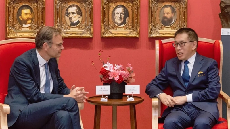 5月9日,国家大剧院院长王宁会见荷兰驻华大使昊使博,双方就推动两国艺术机构开展深入合作进行交流。